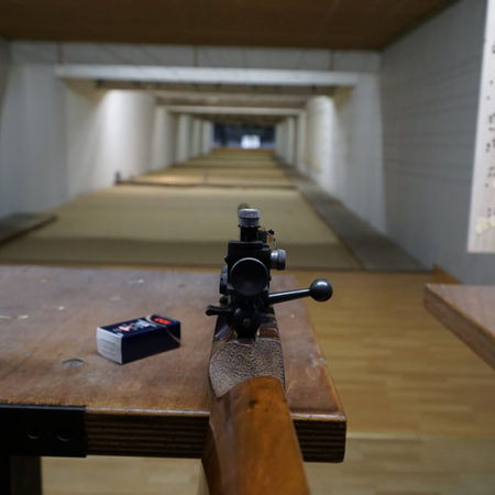 Auf unserem Kleinkaliberstand mit 50m Distanz können 4 Schützen parallel trainieren.